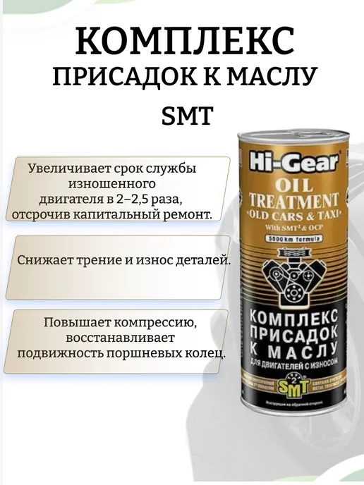 Hi-Gear Oil Treatment з SMT2 — високоефективна антифрикційна присадка для моторних олив. Завдяки унікальному модифікатору тертя SMT2 зменшує знос деталей, підвищує ресурс двигуна та гарантує стабільну роботу навіть у складних умовах.